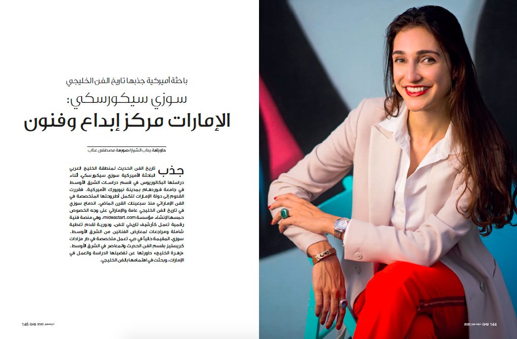 Mid East Art founder Suzy Sikorski is featured in December 2020’s issue of ‘Zahrat Al Khaleej’ (زهرة الخليج) - the leading women's lifestyle magazine in the Arab world today!